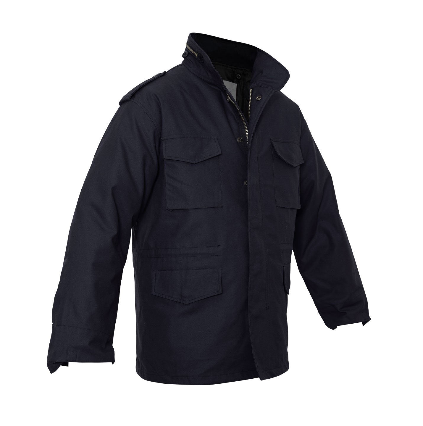 A tried-and-true classic, Rothco’s M-65 Field Jacket has been designed to conquer the cold. The tough, water repellent outer shell provides superior protection from wind, rain, snow & sleet. With a removable quilted button-in liner for added warmth, this all-season jacket is designed to government specifications and features a concealable drawstring hood stored in the collar and secured with a brass zipper closure. Get ready for any weather conditions with the classic Field Jacket!
